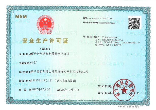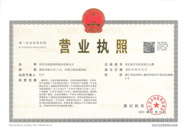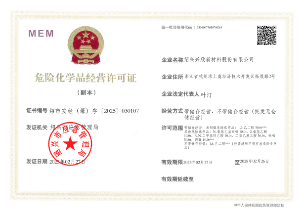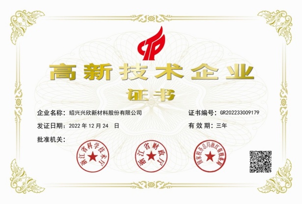 紹興興欣新材料股份有限公司成立于2002年06月27日,占地面積122畝,位于杭州灣上虞經(jīng)濟技術(shù)開發(fā)區(qū)拓展路2號,現(xiàn)有職工200余人,專業(yè)技術(shù)人員50余人;博士、碩士研究生30余人組成的一支知識型、專業(yè)化的技術(shù)科研團隊。公司面向全球市場,專業(yè)開發(fā)電子化學品、環(huán)保化學品、醫(yī)藥中間體、高分子材料等先進新材料重點領域的省級科技型企業(yè);建有浙江上虞、安徽東至兩個生產(chǎn)基地。目前為“國家高新技術(shù)企業(yè)”、浙江省“隱形冠軍”企業(yè)、浙江省專精特新中小企業(yè);建有“省級”研究開發(fā)中心,共建天津大學浙江紹興研究院電子化學品研發(fā)中心。